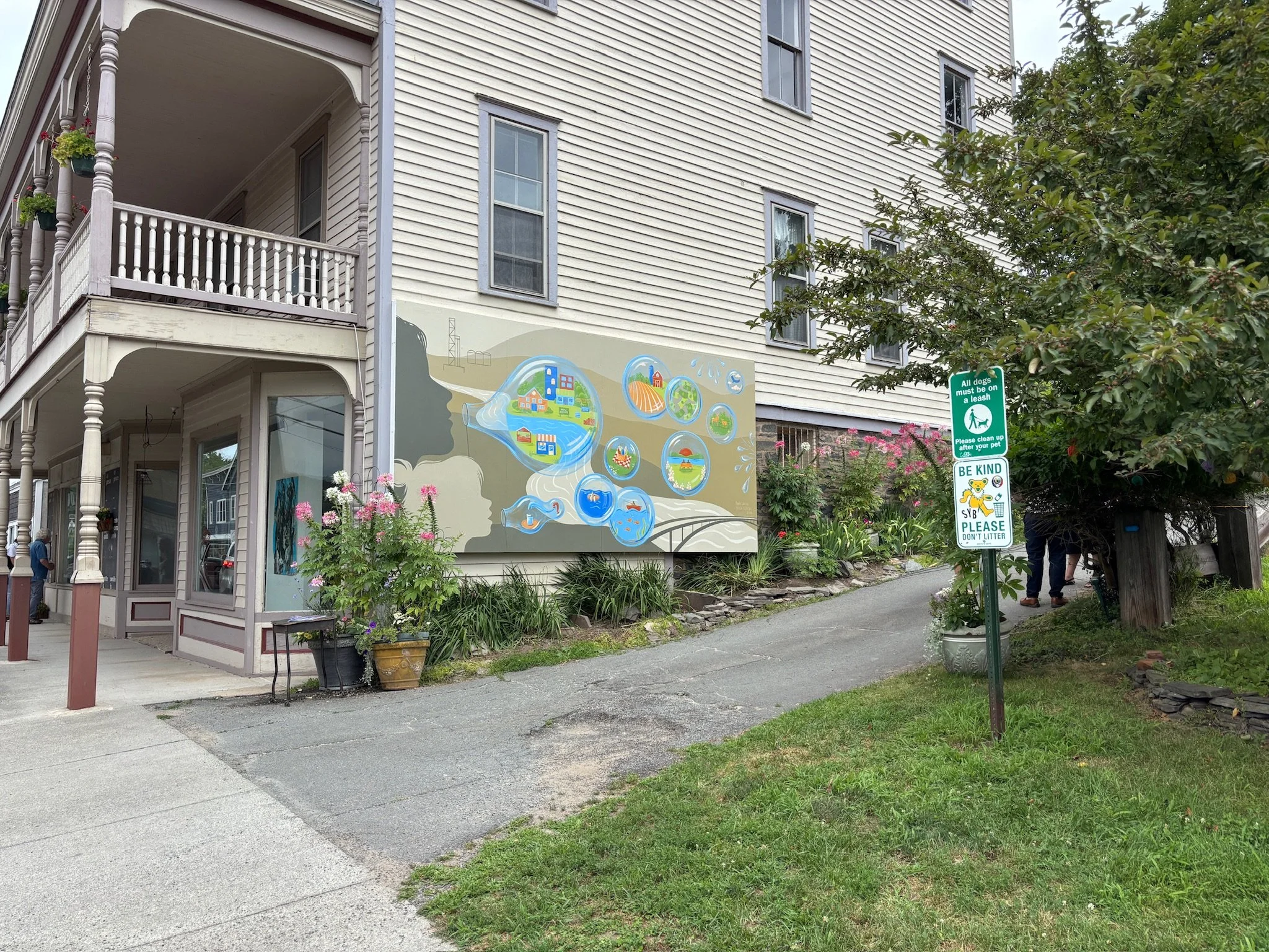 The mural is the result of a collaborative process rooted in community voice and storytelling. Inspired by interviews with people living in fracking-impacted communities in Ohio, these stories were shared, discussed, and visualized in a community workshop held in Narrowsburg, NY. Artists Frida Foberg and Kayla Jolin refined the ideas into a cohesive design, which was then painted together with community members and visitors. This participatory approach is central to the artists’ practice - creating space for shared reflection while allowing more people to feel agency and ownership over the artwork in their town.